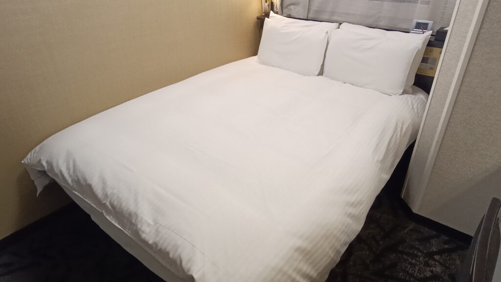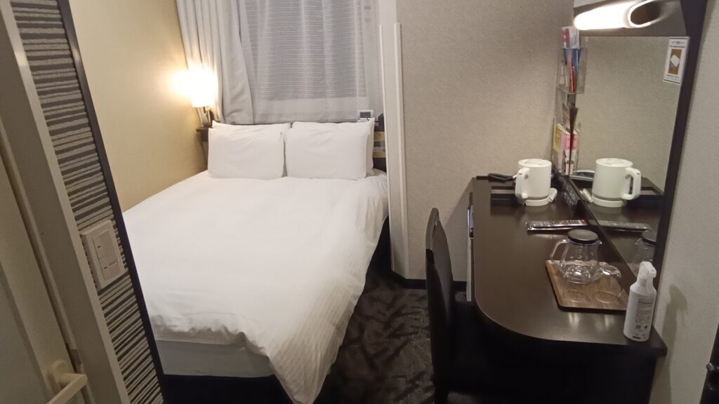 ダブルを1名で利用。仕事用としても問題なく、1名利用なら十分な広さと感じました。清潔感があり、連泊でもストレスは少なめです。