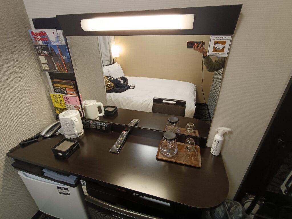 ホテル内にコンビニが入っており、飲み物や軽食の買い足しが簡単。外に出なくてOKなのは地味ですが大きな利点です。