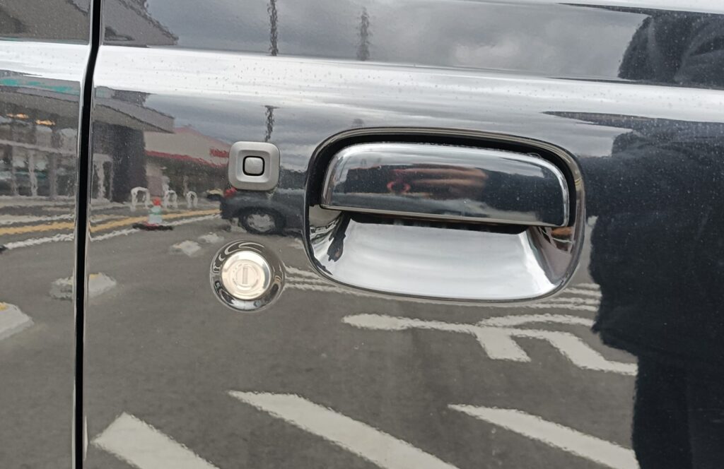 ドア周りは黒系なのに、鍵穴だけシルバーなので意外と目立ちます。